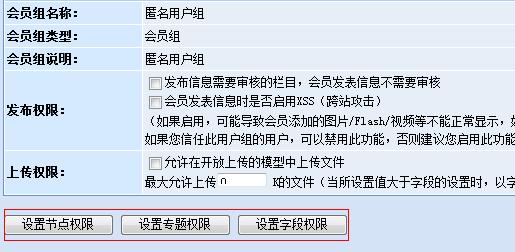 此途徑可以通過用戶管理中的“角色管理”和“會員組管理”來設(shè)置相應(yīng)的字段權(quán)限。先來看一下動易SiteFactory? 新增加的“匿名投稿用戶組”的權(quán)限設(shè)置截圖: