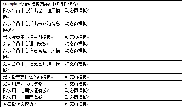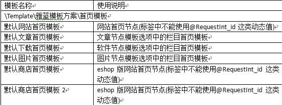 附默認(rèn)雅藍(lán)模板方案中各模板的使用說(shuō)明: