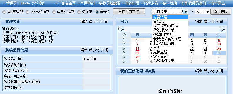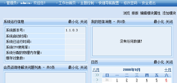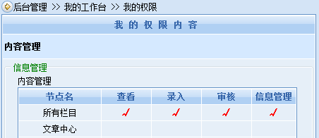 為了方便管理員的后臺(tái)管理,新版本在“我的工作臺(tái)”加入了“我的權(quán)限”、“使用幫助”、“切換管理員身份”三個(gè)新功能。“我的權(quán)限”方便管理員對(duì)自身管理權(quán)限的查看;“使用幫助”方便在系統(tǒng)添加和改進(jìn)功能后,能夠快速的對(duì)其他管理員進(jìn)行通知和培訓(xùn);“切換管理員身份”方便管理員在不退出自身帳號(hào)的同時(shí),可以對(duì)網(wǎng)站會(huì)員和其他管理員進(jìn)行管理。