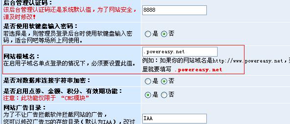 3、開啟子域名時,填寫的主域名需和網站信息配置中的網站地址一致。