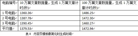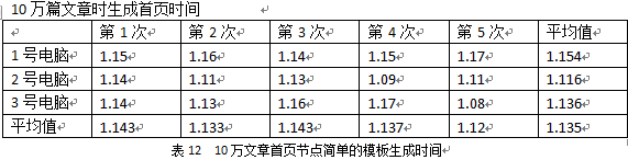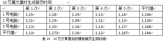 1)內(nèi)容頁模板最簡化,只保留顯示文章的標(biāo)題、作者、更新時間、內(nèi)容等,不要任何其他不相關(guān)的標(biāo)簽,如相關(guān)文章、推薦文章、熱門文章等,生成1萬篇文章計時。模板的前臺顯示效果見下圖: