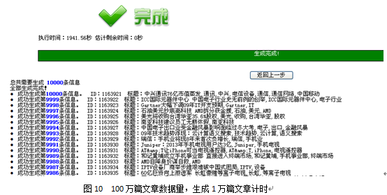 為了不讓ASP.NET的特性影響生成速度,先小量生成10篇文章,不計時,然后開始生成1萬篇文章并計時。