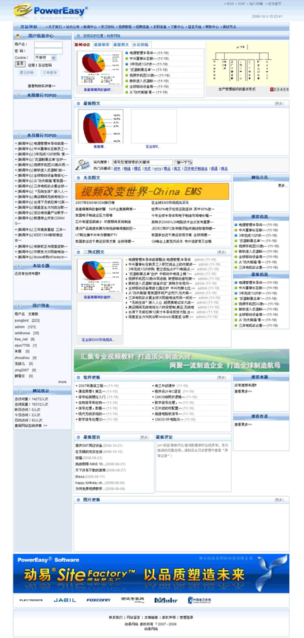 6)為首頁制作一個復(fù)雜的模板(調(diào)用20個欄目的列表,還有其他各種功能),生成首頁計時。模板的前臺顯示效果見下圖: