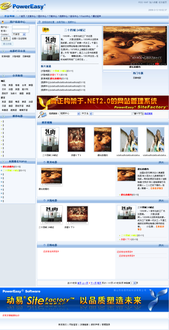 利用動(dòng)易SiteFactory 2.5 預(yù)置的視頻模型,站長(zhǎng)可以擴(kuò)展出多樣化的網(wǎng)站應(yīng)用,如在自己網(wǎng)站上輕松搭建起在線(xiàn)影視播放頻道,以吸引更多的瀏覽用戶(hù),為網(wǎng)站聚集更多人氣;還可供教育\學(xué)校網(wǎng)站建設(shè)起在線(xiàn)教程點(diǎn)播網(wǎng)站(如動(dòng)易官網(wǎng)的動(dòng)易起航教學(xué)教程點(diǎn)播站點(diǎn))。此外,還可以結(jié)合動(dòng)易內(nèi)容管理中的收費(fèi)瀏覽功能來(lái)構(gòu)建起商業(yè)性質(zhì)的收費(fèi)網(wǎng)站,以更好地實(shí)現(xiàn)網(wǎng)站運(yùn)營(yíng)盈利化。