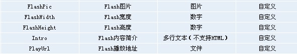在Flash模型中新增的字段有Flash圖片、Flash寬度、Flash高度、Flash內(nèi)容簡介、Flash播放地址等,站長可以利用這些字段來設(shè)置Flash文件的首頁圖片、內(nèi)容簡介、播放地址、寬高度等等,可以滿足普通Flash模塊構(gòu)建的需求。如果還需要做其他更多個性化效果或者設(shè)置的話,那就需要大家多動動腦筋動動指頭自力更生了哦(*^__^*)