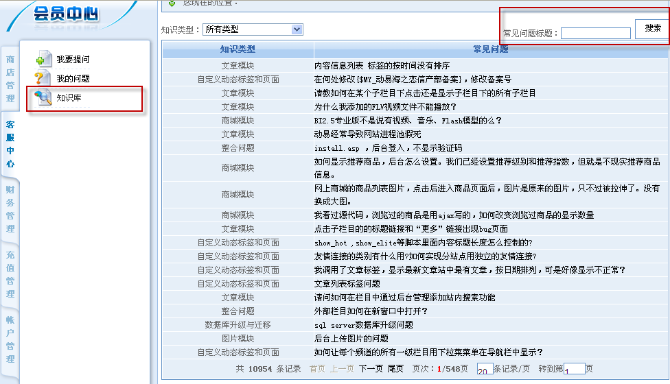 用戶可在客服中心里查看及查詢到所有用戶提問并已解決的所有問題,這樣用戶提問得越多,知識庫便也越大,也可以更好地對用戶起到幫助的作用。用戶在提問前可以先在知識庫里查找過沒有相同問題答案后才提交問題,這也大為節(jié)省了管理員對重復問題進行答復所花費的成本。