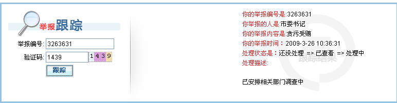 舉報\投訴處理過程隨時跟蹤查詢