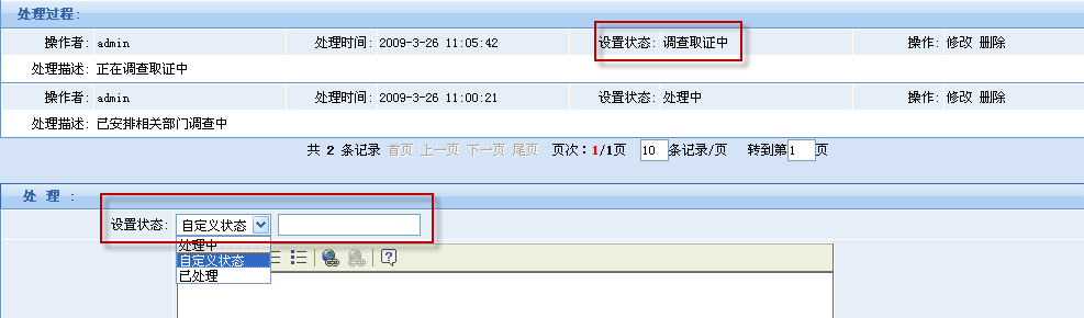 舉報\投訴處理過程中的各種狀態(tài)可以自定義。如根據(jù)政府部門具體情況設(shè)置“已提交相關(guān)部門處理”、“調(diào)查取證中”等等。