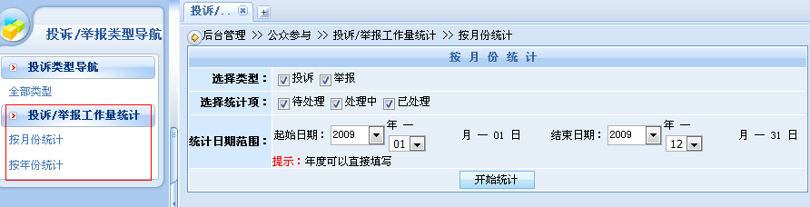 投訴/舉報工作量統(tǒng)計