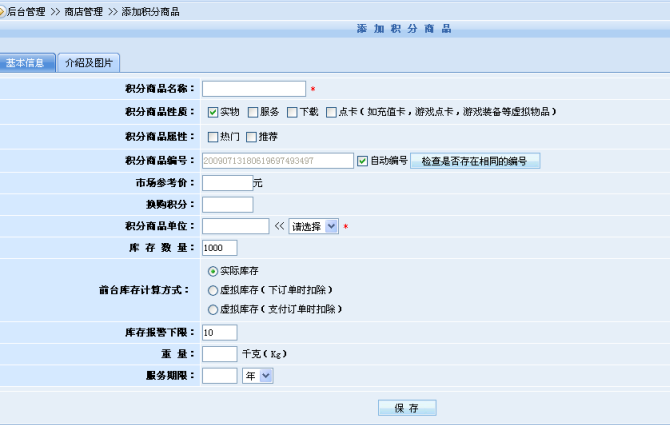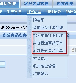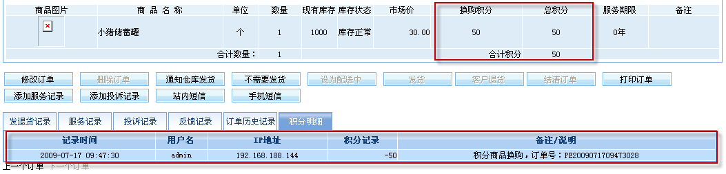 在BizIdea3.0中,商家可以在網(wǎng)站后臺(tái)事先添加好相應(yīng)的積分商品,以供前臺(tái)會(huì)員進(jìn)行兌換。而前臺(tái)會(huì)員在自己的積分達(dá)到商家設(shè)定的數(shù)值后便可以直接選定需要兌換的商品,然后提交兌換訂單,商家在后臺(tái)處理完訂單后便直接將兌換商品郵寄給會(huì)員,同時(shí)會(huì)員帳戶中減去相應(yīng)積分。而且,為了便于對(duì)積分商品和積分兌換訂單的良好管理,BizIdea后臺(tái)將對(duì)積分商品和訂單和普通商品及訂單進(jìn)行分開獨(dú)立管理,亦即后臺(tái)商品將分為普通商品和積分商品兩類、訂單也分為普通訂單和積分商品訂單兩類進(jìn)行管理。