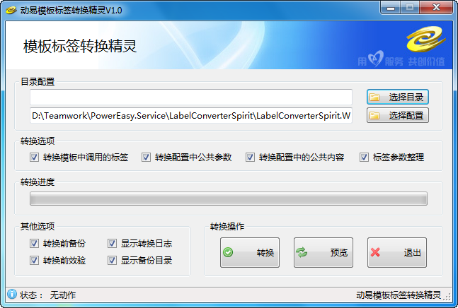 下面我們來(lái)看看“動(dòng)易模板標(biāo)簽轉(zhuǎn)換精靈”的操作界面及轉(zhuǎn)換前后的標(biāo)簽文件: