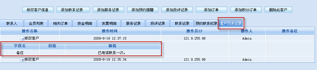后臺(tái)客服人員對客戶信息的任何修改記錄,系統(tǒng)均將自動(dòng)記錄在案,如同訂單歷史記錄。這樣便可以方便地查看到該客戶信息的所有歷史修改記錄,同時(shí)也可以對客服人員擅自修改客戶信息的現(xiàn)象進(jìn)行有效的監(jiān)督。