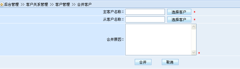 在企業(yè)客服人員眾多的情況下,極有可能會(huì)出現(xiàn)多個(gè)客服人員聯(lián)系同一個(gè)客戶的情況,如果在客戶聯(lián)系前期對客戶的資料了解得不夠清楚,便會(huì)導(dǎo)致多個(gè)客服錄入了多個(gè)客戶、但最后卻發(fā)現(xiàn)這多個(gè)客戶均為同一個(gè)客戶的后果(如客戶方A聯(lián)系人聯(lián)系的是A客服,B聯(lián)系人聯(lián)系了B客服)。在這樣的情況下,便需要將多個(gè)客戶信息合并為一個(gè)。合并后,之前多個(gè)客戶的聯(lián)系記錄、訂單信息機(jī)資金明細(xì)等均會(huì)匯集到一個(gè)客戶下。