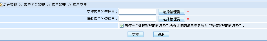 系統(tǒng)提供了客戶交接功能,可以將一個(gè)客服人員下屬所有客戶一次性全部交接給另一個(gè)客服人員,交接后,客服A的所有客戶所有者便自動(dòng)轉(zhuǎn)為客服B,這樣就方便了當(dāng)客服A離職或因其他原因不再處理客戶時(shí)可以將其所有客戶便捷地交接給另外的客服人員。