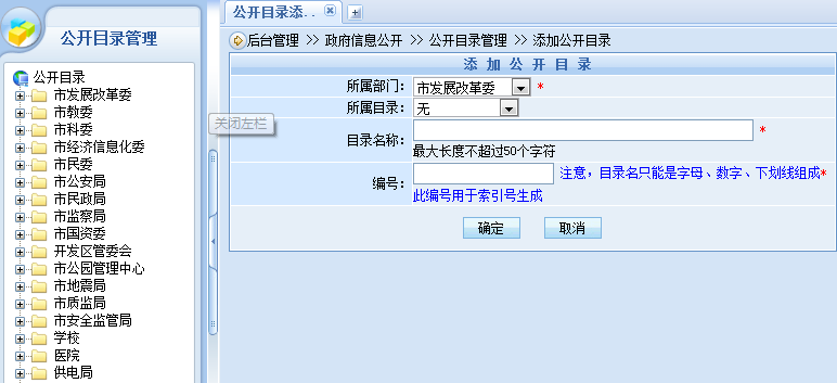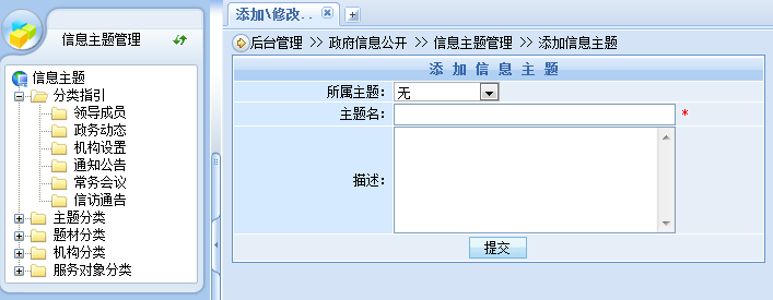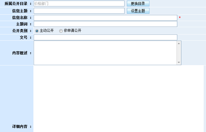 用戶可以直接添加公開信息的主題、名稱、文號(hào)、公開類別、概述等。