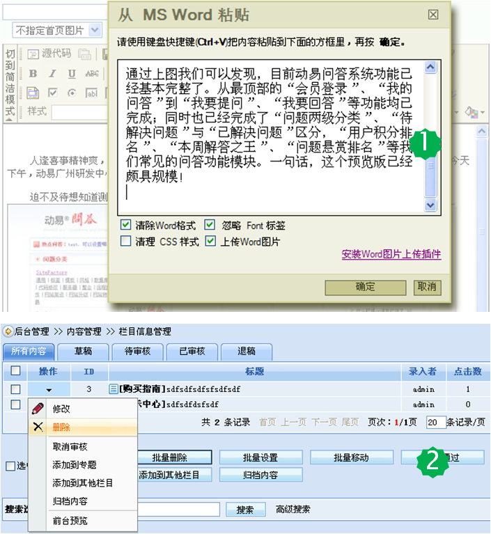 各部門信息采編人員通過手工或者自動(dòng)的方式將信息入庫?!笆止と霂臁敝С秩斯ば畔⒕庉嫞▓D文混排、word文字排版、word圖片自動(dòng)上傳等),且為用戶提供“所見即所得”的內(nèi)容編輯器;“自動(dòng)入庫”支持網(wǎng)站信息自動(dòng)采集或Excel文檔導(dǎo)入,極大降低用戶的維護(hù)工作量。