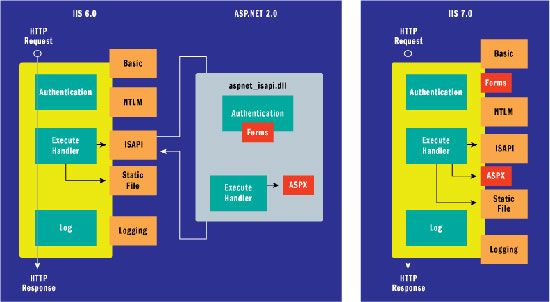 IIS7的主要部分已被重新編寫,重寫的大部分都涉及到新的集成模式,該模式允許.NET模組可以在IIS管道的任何階段掛接進(jìn)來(lái)。然而,當(dāng)我們讓ASP.NET運(yùn)行于這一集成模式時(shí),就會(huì)曝露出一些無(wú)法兼容的改變。